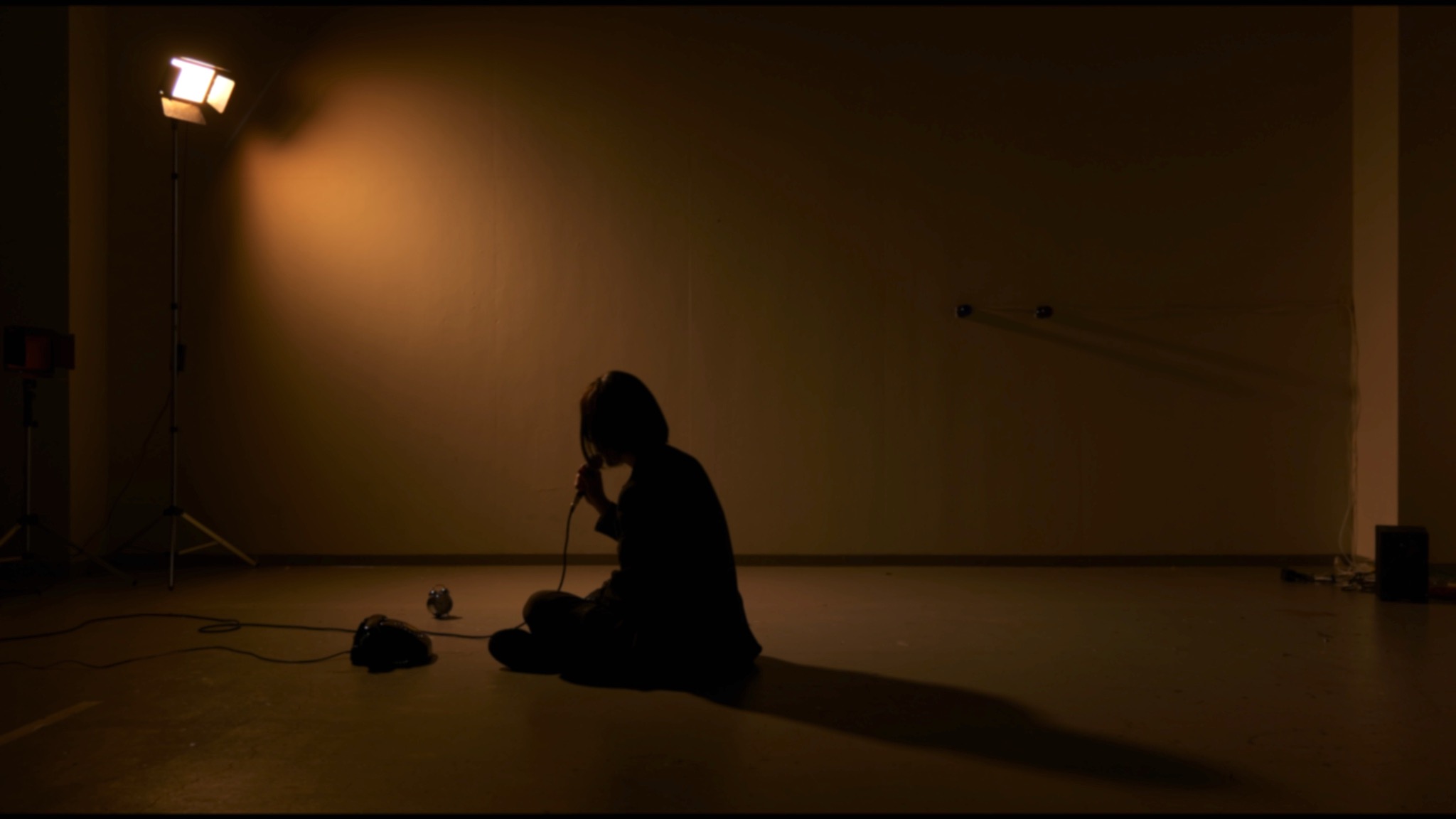 ダイヤル式電話機や電話時報(その原型は1950年代に始まり、戦後の高度経済成長期を支えた)は単なるメディア史的な関心やノスタルジーではなく、新自由主義的な停滞と無限ループの気分を表している。他方で、《117》の登場人物はコミュニケーション中毒者でありながら孤独な現代人——それはあくまで社会的な状況に置かれた者である——の寓話的な表象でもある。映像内でテイクナンバーが読み上げられ、カチンコ(映像と音声のタイミングを一致させるための道具であり、「同期」というこの作品の主題が凝縮されている)が鳴らされ、カットが入ることで、登場人物の暗鬱な行為は演技=遊戯に過ぎないことが示唆される。作者は単なる現状認識ではなく、そのゲームが唯一絶対的なものではないことをも鑑賞者に示したいと考えている。
